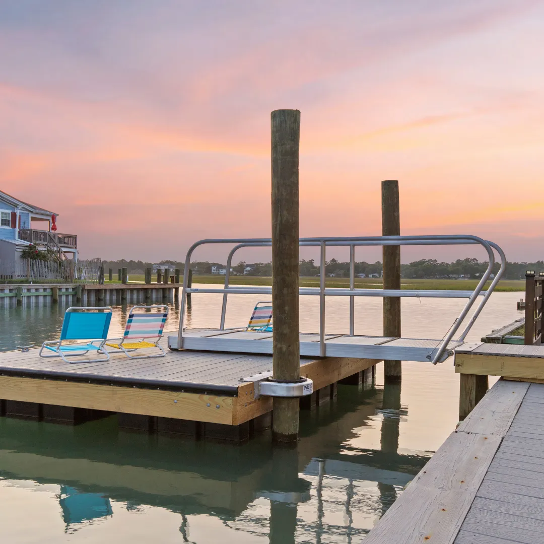 This brand new floating dock allows easy access to the Cherry Grove Channel and salt marsh via small boat, kayak or paddle board. Also perfect for that early morning or evening fishing session