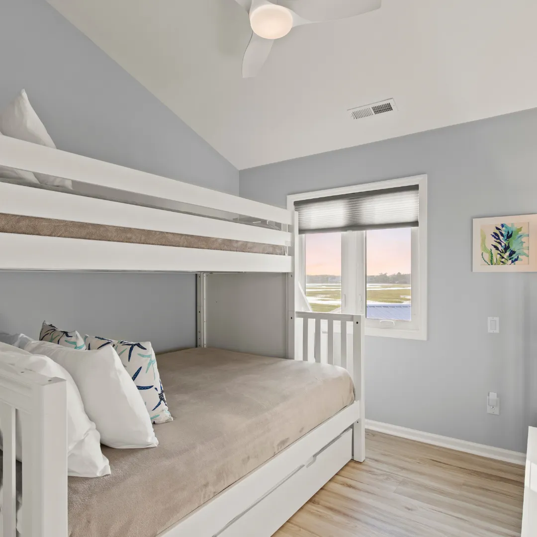 ⭐⭐⭐⭐⭐ - "This house is so gorgeous and fun! We enjoyed the view from the decks every morning and evening and there was lots to keep even my older kids entertained. Watching the tide come in each day was really cool to us Nebraskans! The walk to the beach is super short and we loved having use of the wagon, beach chairs, and toys to use at the beach. I am one who really appreciates the little details and therefore enjoyed the super crisp sheets, soft beds, huge showers, ice machine, and fully stocked k-cups of which we used a lot! We did a lot of cooking at the house as well and found the kitchen to be well stocked, along with a grill. Would highly recommend. Our group of 6 adults, 2 kids, and 1 toddler were very comfortable and impressed with the beautiful house!" - Rachel June 2024