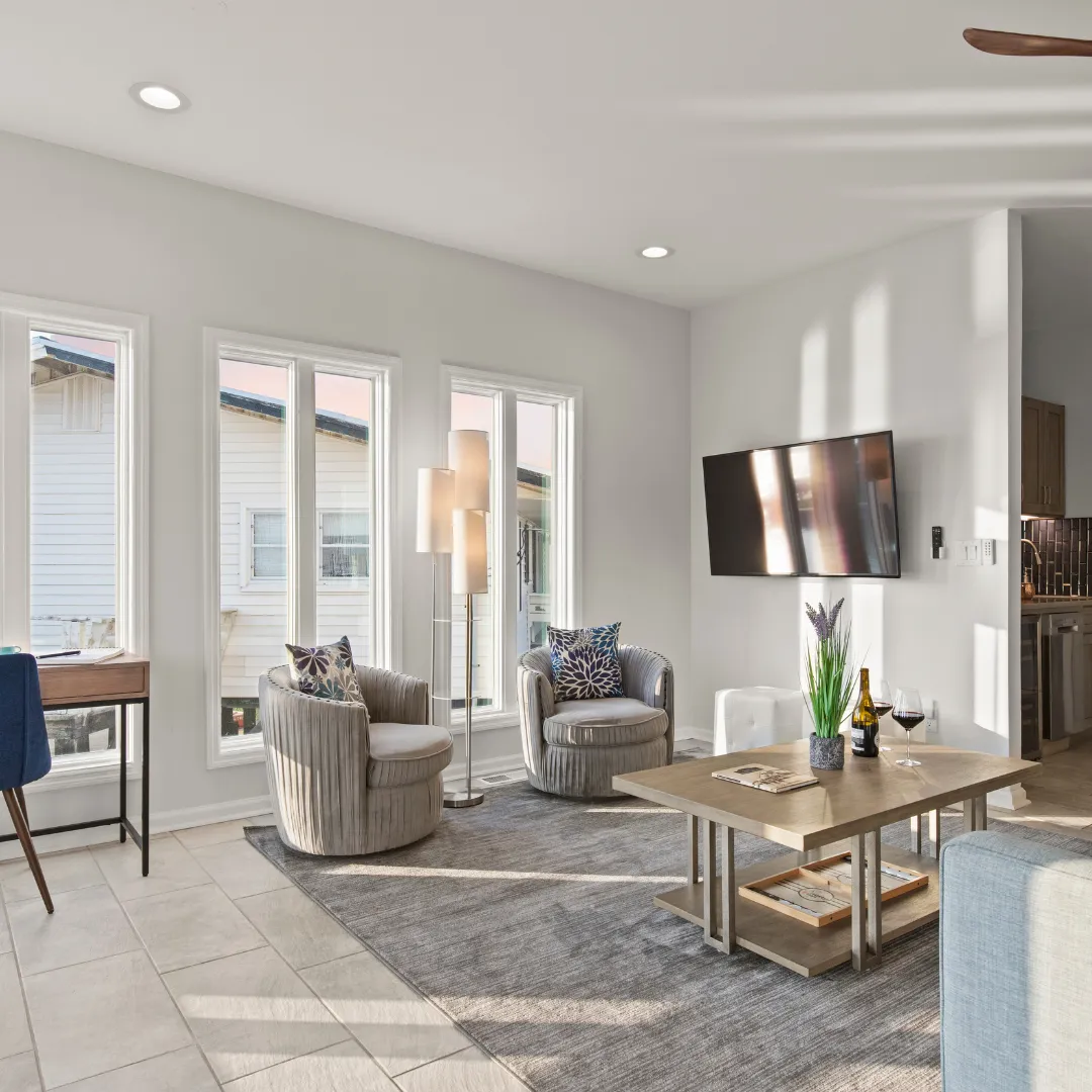 A unique feature of this 4 Bedroom gem is two (2) spacious living rooms, one on the second floor and one on the third floor. Everyone will have a ton of space to chill and do their thing. The second floor living room also features a beverage fridge, ice maker and dishwasher.